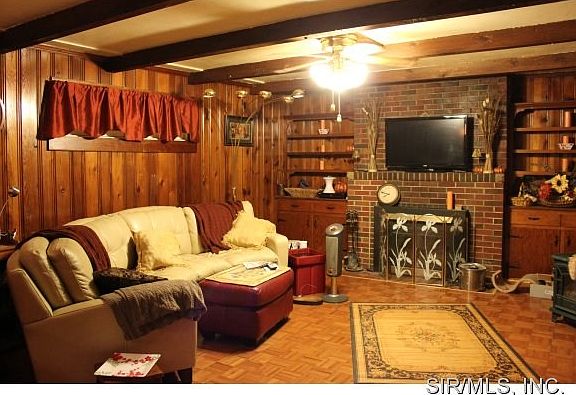Cute Brick 3BR/1 BA ranch with basement. Home features large living room with woodburning brick fireplace. Kitchen with all appliances that stay. Newer windows, Roof was replaced in 2012, New sewer line in 2014. Full Basement, partially finished with family room and laundry room, plus a gun safe that will remain. Outside there is a one car garaged and a hot tub that also stays.