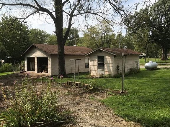 What a pretty little starter or retirement home! With 2 bedrooms, 1 1/2 baths, this vinyl sided home has CH/A (LP-tank owned), flue & wood stove. Detached 2 car garage, storage building, root cellar...all on 1 93x150 lot! Check it out soon! Taxes $358. $49,900.