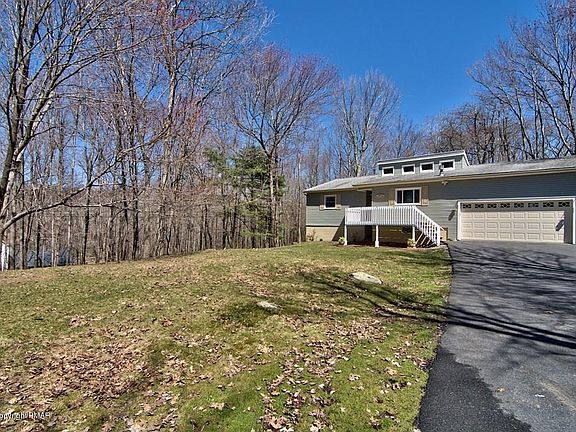 PRIVATEPEACEFULPERFECT! This fantastic 3BD/2BTH Contemporary Ranch has been beautifully remodeled, is meticulously maintained and includes a full dry basement, 1.5 car garage with paved drive all on 1.13 wooded acres close to all! Features include a spacious open floorplan with cathedral ceiling and free standing LP fireplace in the living room, lots of natural light, new flooring, fresh paint, modern lighting and hardware, & spacious rooms with plenty of storage throughout! The Master feature s a walk-in closet and slider to a private deck and the kitchen has lots of hardwood cabinetry, counter space and a breakfast bar! The home is perfect for outdoor living & boasts 3 decks, and a patio with firepit area--great for relaxing or entertaining! NO DUES, NO DEVELOPMENT, and minutes to major roads, area amenities attractions! Ask about our list of improvements & CHECK OUT OUR VIRTUAL TOUR! Don't Delay--Call Today!