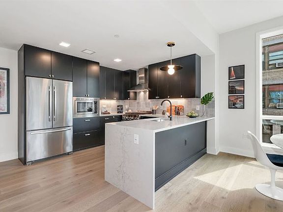Prior's Pointe, Downtown Jersey City's most exciting new development, is now open! Located in the trend setting Village West neighborhood, each spacious 2 bedroom 2 bath home is designed with extraordinary finishes. Units in this steel and concrete structure are finished with 8" oak floors, central air heat, large Pella designer sun-filled casement windows and approximately 10ft high ceilings. Gorgeous kitchens offer modern dark cabinetry with brass hardware, beautiful Jenn-Aire steel pro-appliances, Italian porcelain backsplashes, vented hoods and Calacatta Grigio waterfall counters. The bathrooms in these HUGE units are finished with European tile, wall hung vanities, including dual sinks in the in the master suite, and rain shower-heads. The expansive roof garden with a BBQ area, is your perfect getaway for lounging, tanning and entertaining. A secured package room, bike storage, Nest climate control systems, and garage parking, are available for your convenience. Easily stroll to 24hr NYC PATH trains, parks and nightlife. Prior's Pointe: Where Welcome meets Home!