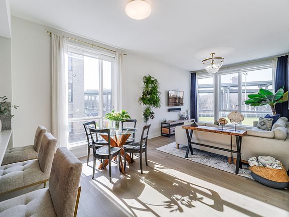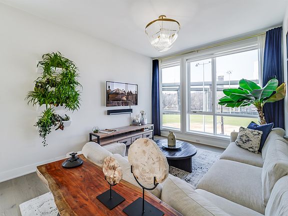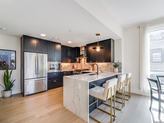 Welcome to this fabulous 2 bedroom / 2 bathroom home in the steel and concrete Prior’s Pointe, an elevator building with garage parking, secure package room and bike storage in the heart of downtown JC’s Village West neighborhood. This corner unit is flooded in natural light with wonderful south and west exposures, lofty 10ft ceilings, and wide plank light oak flooring. The sleek and modern kitchen features dark cabinetry with brass hardware, Jenn-Aire steel pro-appliances, Italian porcelain backsplash, a vented hood and Calacatta Grigio waterfall counters with seating, opening onto a spacious dining and living area. The two oversized bedrooms are located apart for privacy. The primary suite features an en-suite bath with floating vanity and double sinks and a rain shower head, and a walk-in closet. The building has an expansive common roof garden with a BBQ area and is a perfect getaway for lounging and entertaining. An easy stroll to NYC PATH trains and steps to parks and restaurants and nightlife.