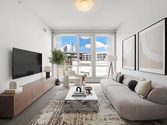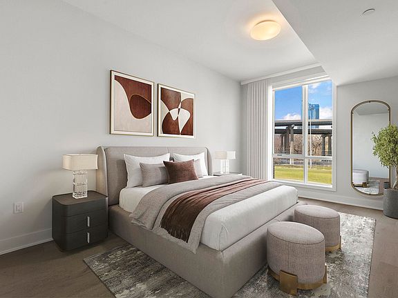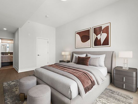 Discover serene urban living in this modern 2-bedroom/2-bathroom home nestled in the heart of Downtown Jersey City. With 10ft ceilings and large floor-to-ceiling windows, there is an abundance of natural light in every room. The open style chef's kitchen includes custom dark cabinetry, Italian porcelain tile, stainless steel appliances, a vented hood, and quartz countertops; the perfect harmonious layout for both relaxing and entertaining. Bathrooms are finished with custom tile, wall mounted vanities, and rain shower heads. Enjoy wide-planked hardwood oak flooring and custom California Closets throughout the home. Prior's Point exudes a sense of sophisticated urban charm, complimented by the tranquility of unique building amenities, such as a rooftop garden with grills. 1 parking space included. Close access to PATH, local cafes, restaurants, boutiques and parks.