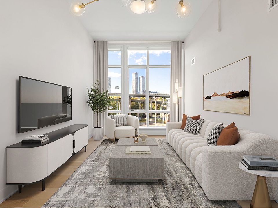 Discover serene urban living in this modern 2-bedroom/2-bathroom PH corner home, nestled in the heart of Downtown Jersey City. With soaring ceilings and large floor-to-ceiling windows, there is an abundance of natural light in every room. The large foyer leads you to your open style chef's kitchen which includes custom dark cabinetry, Italian porcelain tile, stainless steel appliances, a vented hood, and quartz countertops; the perfect harmonious layout for both relaxing and easy living. Enjoy entertaining in your large living and dining area. Bathrooms are finished with custom tile, wall mounted vanities, and rain shower heads. Enjoy wide-planked hardwood oak flooring and custom closets throughout the home. Prior's Point exudes a sense of sophisticated urban charm, complimented by the tranquility of unique building amenities, such as a rooftop garden with grills. 1 parking space included. Close access to PATH, local cafes, restaurants, boutiques and parks. Don't miss out on this incredible opportunity!