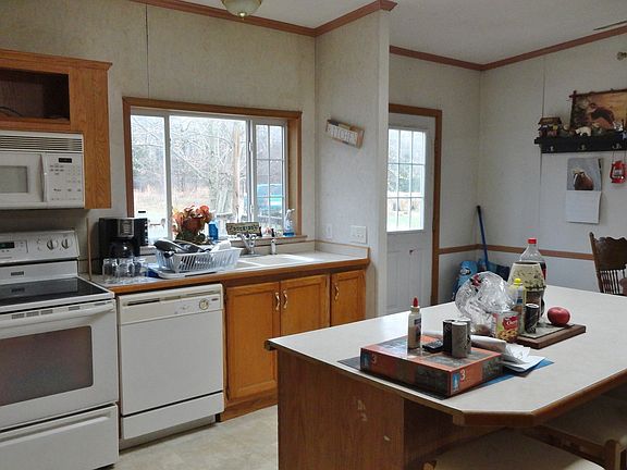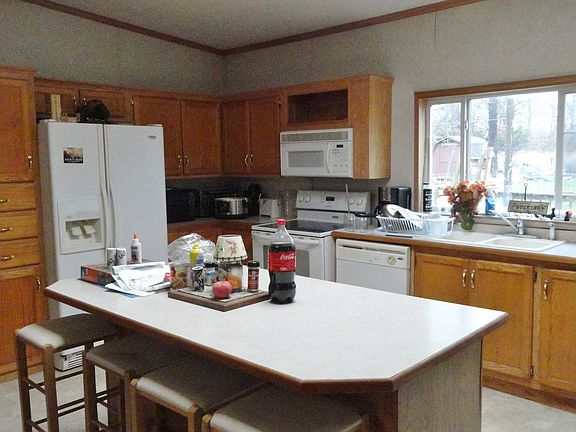 Spacious home 3 bedroom, 2 bath home on 9.5 acres. Located just off blacktop road. Livingroom is large enough for the family with a cozy stone faced wood fireplace and vaulted ceiings. . Kitchen features bar and appliances. Master with walk in closet master garden tub & walk in shower & double vanity.