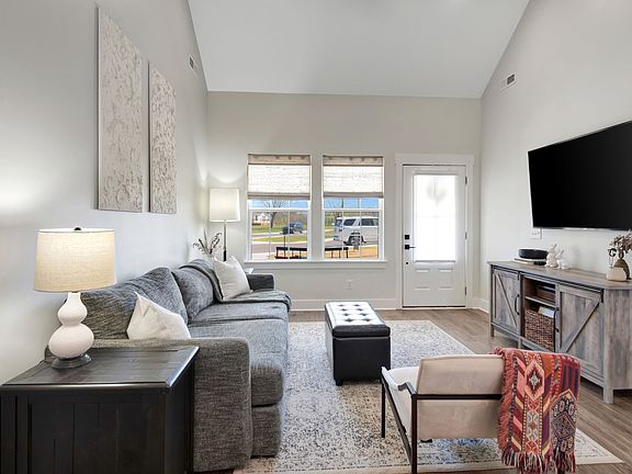 One Level Living w/front porch..LG flat yard w/fenced back yard w/ storage building and play area; Open floor plan; 14' vaulted ceilings in common area; 9' ceilings throughout; spacious eat-in kitchen; Stainless appliances; granite countertops;, all appliances remain inc washer and dryer; Large utility room; Primary suite has trey ceiling, generous bathroom and large closet; patio, 5 mintes to downtown and industrial park; 10 minutes,10 minutes to I40. Give Jamie a call for more information. Awesome investment potential.