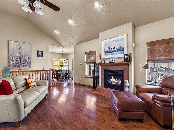 5 BR,3BA Home on a oversized lot close to the golf course. Wood flooring and eat in kitchen, stainless appliances, modern upgrades .Gas log Fireplace in Livingroom. Utility room off garage Finished basement has Family room ,2 bedrooms ,laundry room, concrete room used for storm saferoom The concrete room has 20 minute fire rated door and extra storage space in basement. 12.6X 15.2 bar/lounge area that has 2nd Dishwasher, fridge and wine fridge. Wood patio off kitchen privacy wood fence in back yard . There has been an inspection on the home and what little that was found was repaired. New roof has been installed.