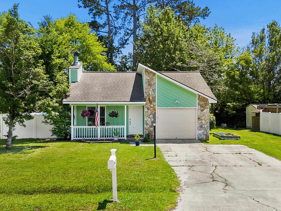 Welcome to 202 Millstone Drive, set in the established Stonebridge community—where mature trees line the streets and there’s NO HOA to limit Your Lifestyle. This charming 3-Bedroom, 2-Bath Ranch Home with a One-Car Garage is sure to impress. Step inside to soaring ceilings, an inviting Wood-Burning Fireplace, and an Open Floor plan that seamlessly connects the Living, Dining, and Kitchen areas. The spacious Primary Suite features a Walk-In Closet, Ensuite Bath with Double-Sink Vanity, and a Tub/Shower combo. Two additional Bedrooms offer ample space and share a full Guest Bath. New sliders lead to a fully fenced side yard—ideal for pets or setting up outdoor furniture on the concrete patio. The backyard offers generous space, mature trees, and room to garden or landscape to your heart’s content. A raised garden bed on the side of the home adds charm for those who love growing their own produce. Recent updates include new flooring and floor moldings, fresh interior and exterior paint, and more. Located on a quiet cul-de-sac, Stonebridge offers a central location just minutes from The Market Common, shopping, groceries, area Beaches and Parks. Don’t miss your opportunity—schedule your showing today!