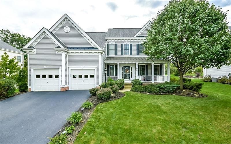 Immaculate colonial in a great neighborhood. The two story entry way is accented by hardwood floors and oak railings. The living room is highlighted by French doors, perfect for a home office. The gourmet kitchen is open to the family and boasts granite counter tops, tile backsplash, center island, recessed lighting, and cherry cabinetry. The family room is highlighted by a center gas fireplace, neutral carpeting and plenty of natural light. The main level also features 1st floor laundry and 9 ft ceilings. Upstairs you will find 4 spacious bedrooms with ample closet space. The Owner Suite offers a luxury corner bath, glass shower and walk in closets. The recently finished lower level is great for all of your entertaining needs and has its own full bath, bar area, and plenty of storage. Outside you will find a great yard with mature landscaping and private patio with fire pit.