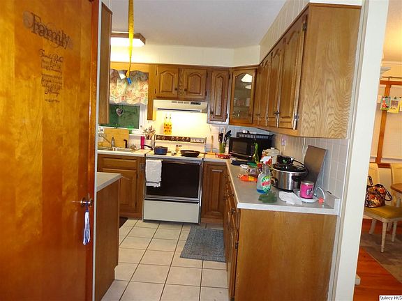 Well kept brick home on quiet street. Features original hardwood floors through out. All windows and front door have been replaced. Large 16' x 12' private covered deck on back with fenced yard. Numerous closets both upstairs and down. Updated 100 amp electric service panel. Water heater replaced in 2013. Electric fireplace downstairs. Concrete drive leads to two car detached garage with automatic opener. Pool table in basement and refrigerator in the garage will convey.