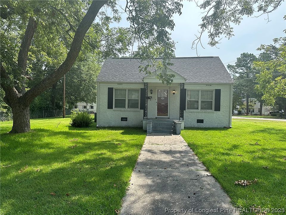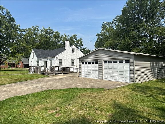 Charming older home in desirable Raeford neighborhood. Easy walk to Main Street shops. Lovely corner lot with partially fenced back yard. 2 bedrooms 1 1/2 Bath. Has a living room in the front of the home and a den/office in the rear. Detached 2 car garage is 24'x 36'. Roof recently replaced. Unheated sunroom on the rear of the home is not included in square footage. Exterior is brick veneer with stuccoed with cement.