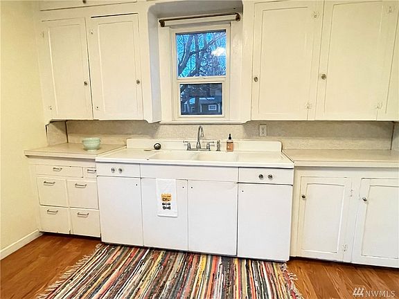 Charming 1930's home minutes from Rotary Park, Dwtn Ellensburg, and CWU. Spacious living room, kitchen and large bedroom on the main floor. Bonus room at the base of the stairs would make a wonderful home office! Upstairs you will find two more carpeted bedrooms. The eat in kitchen is big, bright and features some great vintage metal cabinets. The fully fenced corner lot includes a lovely established tree and large storage shed. Plenty of off street parking.