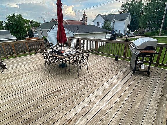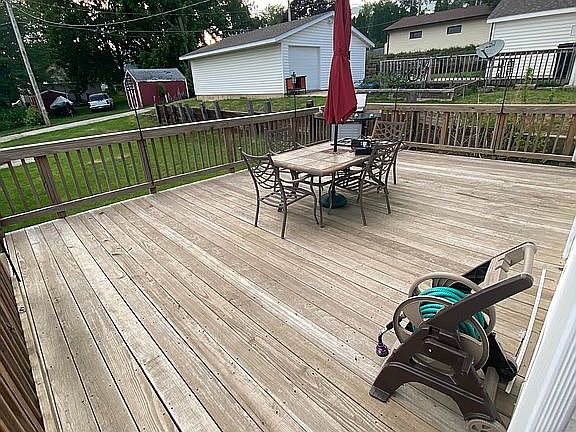 Adorable Single Family home on a double .22 acre lot! New wrap around deck added in 2019 New: Water heater Furnace Washer/dryer Refrigerator Dishwasher Detached 2 stall garage Nice sized living area and dining room Double lot Walking distance to Main Street For additional info call 319-560-0441