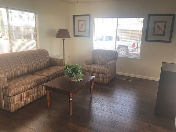 12X52 1B/1B, Central A/C, Fully Furnished, New Interior Paint & Baseboards, New Wood Laminate Flooring T/O, Gas Range, 2 Dr Refrigerator, Ceiling Fans, Tub/Shower w/Glass enclosure, Stackable W/D, Concrete Drive w/Awning, Raised Deck w/Awning, 2 Storage Sheds, in 4 star, 55+ Resort Community with tons of activities and amenities. Large, recently renovated clubhouse with modern kitchen, Seasonally heated pool/spa, 3 billiard tables, Fitness Room, Card Tables, TV Room, Library, Shuffleboard, Horseshoes, Potlucks, Event Parties and more.