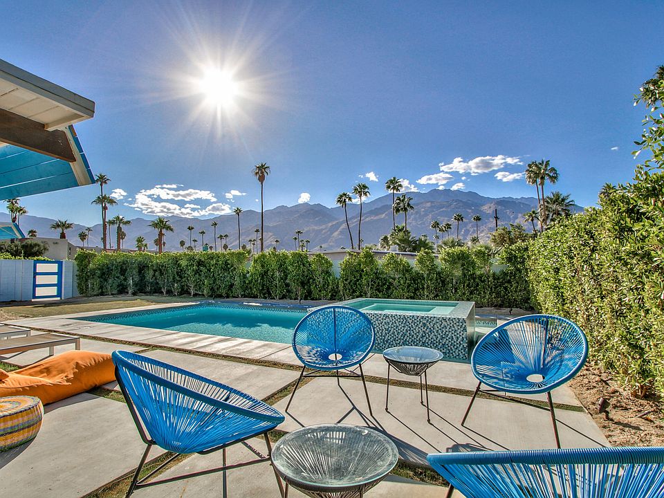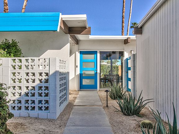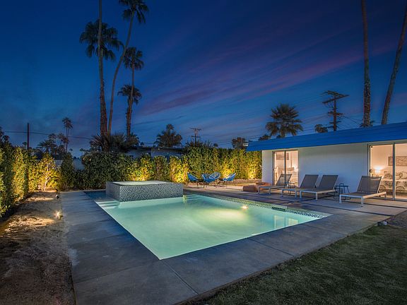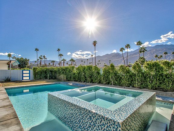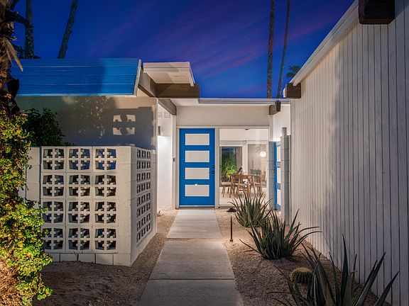 Fabulous Mid-Century Modern Residence Designed by William Krisel and built by the Alexander Construction Company in 1958 with a Guest House/Casita Designed by Hugh Kaptur. Enjoy the Palm Springs lifestyle at this 4/3 classic ''MidMod'' centrally located to DWTN PS. Property recently had a floor to roof renovation with all new windows and doors, Terrazzo tile flooring, new kitchens & bathrooms have been completely updated while maintaining the charm and character of tongue in groove ceilings and walls of glass. Main house has 3 bdrms, 2 baths and the guest house/casita has an additional bedroom, one full bath, sizable kitchenette and living room. Bask in the sunlight next to the front loaded pool which was designed to maximize the magnificent, unobstructed South & West mountain views, possibly the best views in all of Sunrise Park. Watch the sunset from the elevated infinity edge spa or sit by the gas fire pit on those cool Desert evenings. Corner lot surrounded by a block wall and privacy hedge create your private oasis. Seamless indoor/outdoor living, this is Palm Springs life at its best! RV parking, gas bbq and custom uplighting. Smart home including smart appliances, sprinkler systems, pool equipment, thermostats, Ring doorbell and state of the art ADT security system. Carport has an electric car charging station. Home has an impressive vacation rental history and may be available as a turn key opportunity. Own a work of art and piece of history today!