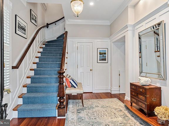 202 N. Morris St is located in the center of Oxford's Historic District,  An easy walk to the Town Park, several marinas, coffee shop, restaurants and stores.  Located on high ground with hi speed internet available, this prime parcel of land extends in an east west direction with the front facing Morris St and the rear facing Factory St.  The property is fully irrigated with lush landscaping, uplighting and has a heated gunite pool. There is an outdoor shower and outdoor kitchen and lovely garden areas surrounding a pergola. There is a two car garage with storage above with off street parking for an additional 3 cars. The home was built in 1883 and is known as the "Parsons House".  There was a renovation in 2005 followed by updates in 2017 and again, by it's present owners in 2020.  It has high ceilings, a primary bedroom suite on the first floor and 4 bedrooms and 2 baths on the second floor.  There is a well appointed office or great room on the second floor plus a small sitting room perfect for reading or quiet time. The construction and finish are exquisite.  No expense was spared in the last renovation and the home is ready to be moved into. The kitchen is state- of- the- art with Wolf stove, double ovens, a Sub Zero refrigerator and extra freezer.  There is a kitchen bar plus eat in area. Also a beautiful dining area off the kitchen.  There is more than ample storage throughout the house. Sit by the pool, or in the shade of the pergola or on your front porch and watch the people and dogs walk by.  This is an extraordinary home that will take your breath away.