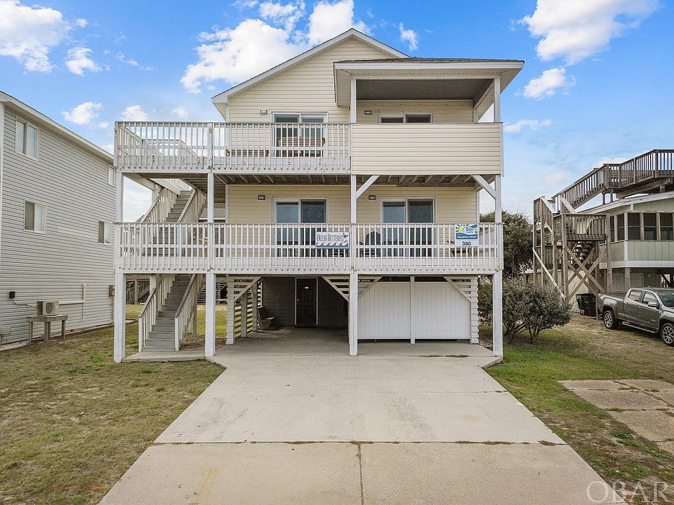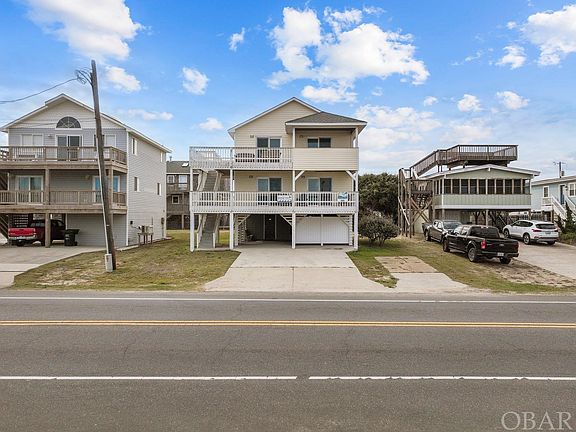 4 Bedroom, 2.5 bath beach house in central Kill Devil Hills location. When you’re here, you won’t want to leave! Walk across the street to the KDH bathhouse and lifeguard beach or enjoy the ocean views from home on the covered top deck. Working with the existing open and welcoming floorplan, this home was completely modernized and upgraded in 2020 with all new windows, exterior sliding glass doors with between the glass blinds, all new flooring, updated light fixtures and ceiling fans, interior doors, new bathroom vanities and toilets, 5 new tvs, and a new hot tub.  The kitchen features all new appliances, countertops and cabinetry.  Sold fully furnished, this is the perfect rental or 2nd home.  House has always had 4 bedrooms although original septic permit shows 3.  Additional improvements to the home include new sheetrock in the downstairs laundry/storage room, with new washer, dryer and hot water heater.  The downstairs area also has a separate locked owner’s closet.  There is an additional gravel parking spot beside the driveway.  Just steps to multiple beach accesses.