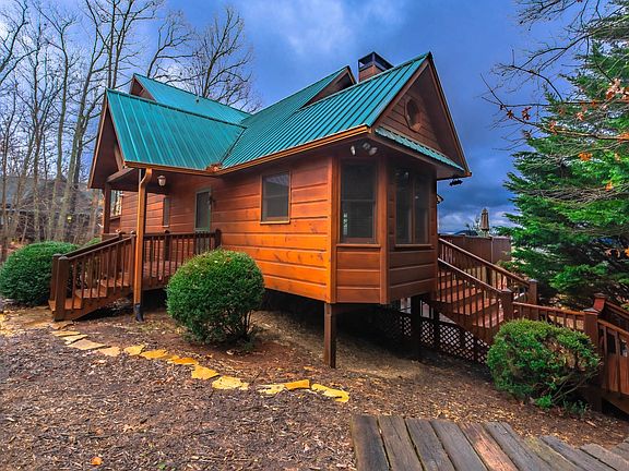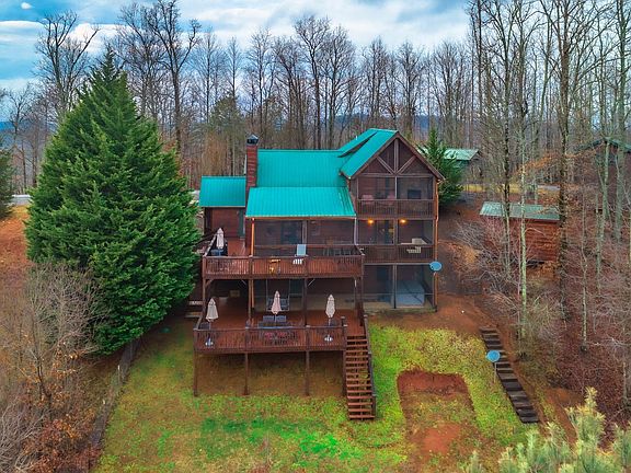^^LUXURY COMPOUND^^ Spend your evenings counting the peaks of the multi-layered mountain ranges while sitting by a fire on one of the three party porches on this stunning chalet! Complete with a double carport, RV storage shed, a most gentle lot w/ fenced in backyard perfect for the pups, extra-large decks for entertaining and bringing the outside in, wood floors, upgraded countertops, slate tile walk in shower, large master bedroom with a Juliet balcony and stone F/P, the list goes on! Terrace level has an addt'l two bedrooms and shared bath, walk out patio, brand new hot tub, and firepit area! Minutes to Downtown Blue Ridge, Lake Blue Ridge, Lake Nottely, and with all paved access, this cabin is hard to beat! Schedule your tour today.