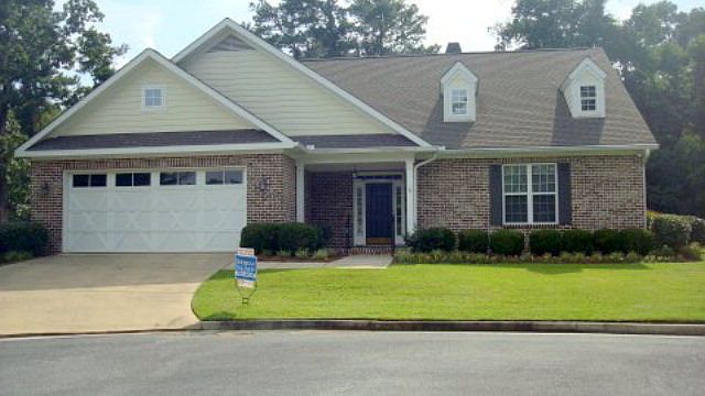 French doors open to the patio, wet bar and built-in bookcases in living room. Also has an irrigation system. No sign