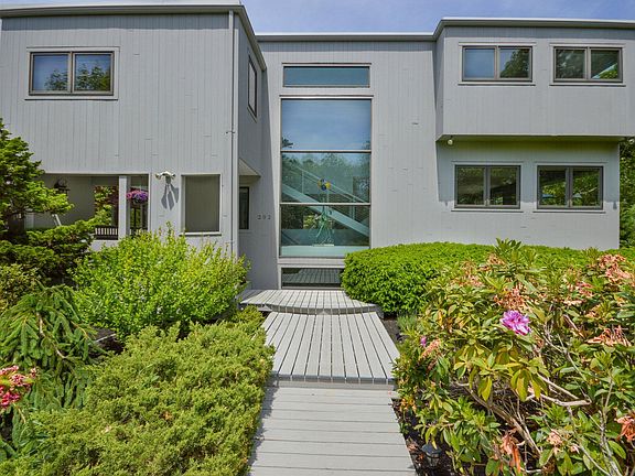 An impressive Contemporary tucked on a secluded 1.76 acre lot off scenic country road. Daylight pours through the many windows into a free flowing interior ideal for entertaining. The living room features built-in bookcases, fireplace, slider to deck and room for the piano. Gather in the dining room warmed by exposed wood beams and Rumford fireplace. The European inspired kitchen is modern and sleek with access to the delightful screened-in porch reminiscent of days gone by. There are four bedrooms - one en-suite - updated baths - lower level family room with fireplace and walkout to private stone patio surrounded by colorful lush landscaping. Two car garage, central a/c, Pella windows, newer furnace and two double wrapped oil tanks. The location is close to East Sandwich Beach and Sandy Neck. Easy access to highway and to Downtown Sandwich. A Cape Cod retreat like no other.