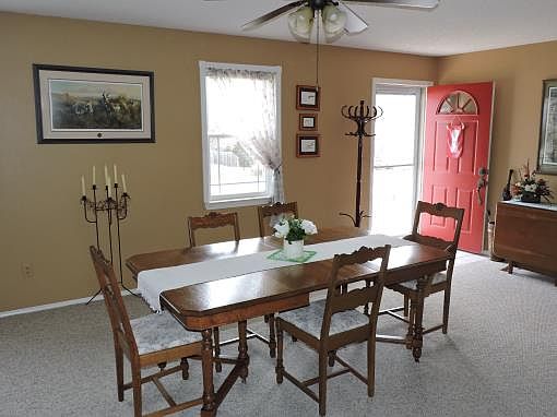 Roomy 3 bedroom 2 bath home with approximately 2000 sq ft all on one level. Large kitchen with new counter tops, tile back splash and new flooring in kitchen and baths. Big living areas. Large 12'x22' covered deck with pretty view. Privacy fence. Storage building 8'x16'. Over sized 2 car garage. Edge of town views and privacy with in town convenience!
