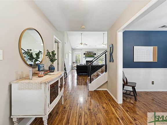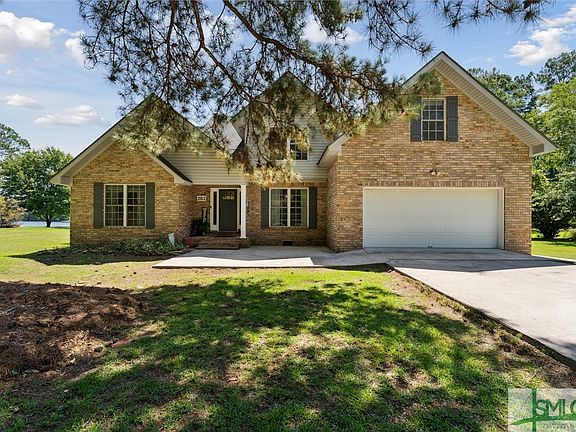 This is the perfect home for large or growing family, this 5 bedroom 3.5 bathroom with bonus room, main floor primary suite with updated bathroom, and extra large family room with fireplace and breathtaking views of the lake. A separate dining room and sprawling updated kitchen with island and plenty of cabinets makes the perfect spot for a family meal. The screened in back porch overlooks the lake and includes your own dock and fire pit area. Views of a lake from almost every window in this home! All this and more in a gated subdivision in Effingham County's only Fly in community with private airstrip. Just minutes from Savannah, Pooler, Statesboro & the new Hyundai Plant!