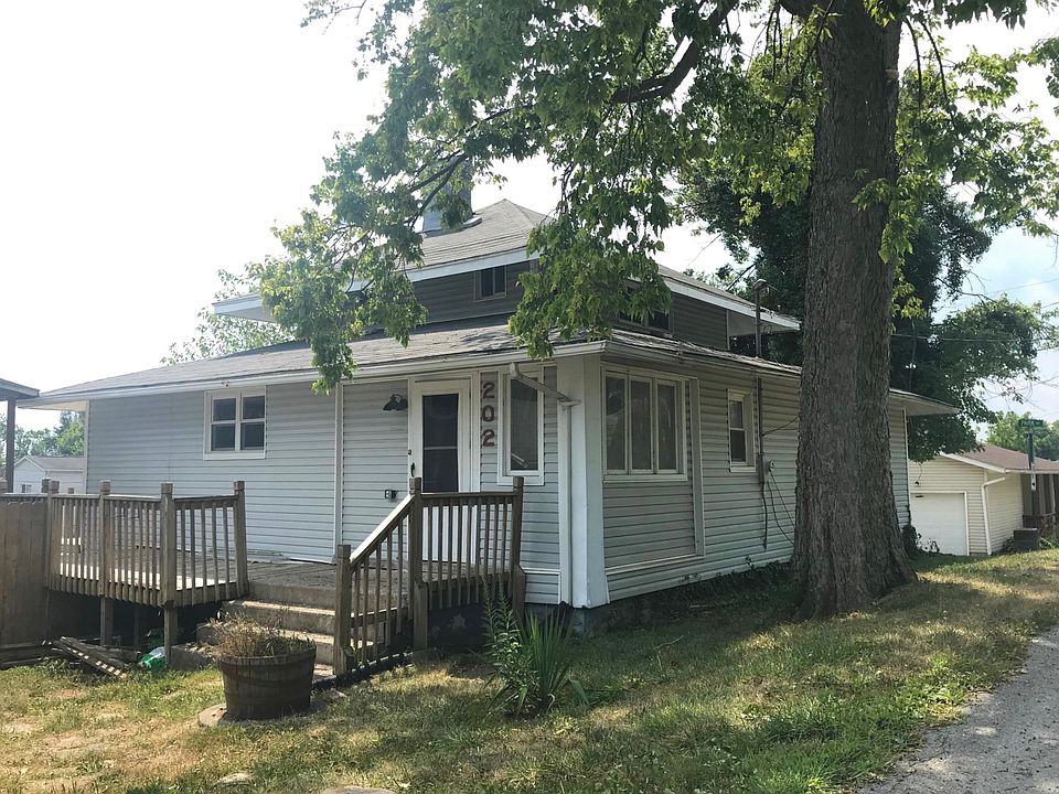 Investment opportunity. Large fenced lot measuring 100' x 100', fenced (possibly could be split to give you another buildable lot.) Three car garage and additional parking. Wrap around decking leading to gazebo. Newer roof, furnace, a/c. Large living room - could use part of that space for another bedroom. Built in china cupboards in dining room. Walk out lower level. Sits up on a hill. Will need to be a cash purchase. Being sold ''as is''.
