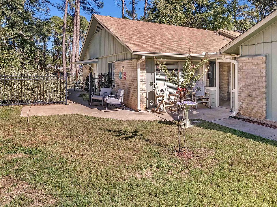 Beautiful duplex located on the #1 fairway on golf course in amazing Holly Lake Ranch. Refreshed, remodeled, and updated! New flooring, new paint and updated bathrooms with other new touches throughout this home. The large kitchen has granite countertops, plenty of cabinet and counter space and eat at bar. The kitchen is open to the living room which has large windows allowing wonderful, filtered light during the day and to see knockout views of the golf course. Amazing stone fireplace in living room is placed smartly so that arraigning furniture nicely is not a problem. The master suite is sublime with golf course views and updated beautiful en suite bathroom. The second bedroom is a nice size that has plenty of room for several pieces of furniture. This room would make a wonderful office space, guest room or craft room. Both bedrooms have generous sized closets. The laundry room was recently touched up and is light and bright and holds full sized machines. If you like to entertain or just sit outside you will love the large covered patio which is surrounded by a nice sized yard and is fenced completely with an iron fence. Amazing unobstructed view of the golf course from the backyard and the size of the backyard makes this one of the most sought after duplex in HLR. A 2 car garage is attached to the house and has a covered breezeway from garage to the front door. Carrying groceries in won't be a hassle. The breezeway is plenty big to have a bench or chairs to sit outside if the weather is not perfect. This home pulls you outside with its awesome yard, sitting areas, views and wildlife. Even if you are not a big outside person, sitting indoors of this beautiful unit would be a pure pleasure. It's a short golf cart ride from the back of house to the clubhouse and restaurant too. Come see this low maintenance easy to care for home fast before you miss out! Truly resort living at its best.