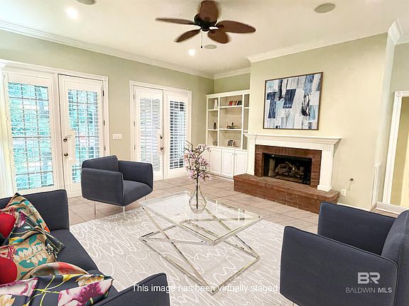 FACELIFT. COME SEE THE TRANSFORMATION. Sweeping Oaks frame this enclave of custom homes in "OLDE DAPHNE." BAYSIDE living, BAY a walk or bike ride away for that by-gone living lifestyle. Near downtown Daphne with boutiques, restaurants, parks, pickleball courts, private schools and public schools. BRICK home with 2 car garage and custom leaded glass door. BRONZE CERTIFIED ROOF EXP. 2018. Fenced, (also invisible dog fence) beautiful flat back yard (waiting for a pool) with mature hardwood trees, custom landscaping, FIREPLACE, raised deck and outdoor kitchen with green egg. River stone walkways. Private and peaceful. NO CARPET, REAL OAK FLOORS & TILE. UPDATED large high end kitchen, so many cabinets, DOUBLE OVENS, MARBLE COUNTERTOPS, TILE BACKSPLASH, pantry and morning room. POCKET DOORS, 3" PLANTATION SHUTTERS, EXTENSIVE TRIM & CROWN MOLDING & 2 FIREPLACES one inside & 1 out. Formal Dining Room. Great room with fireplace and built in bookcase. Split plan. Primary suite has access doors to the outside deck & yard oasis. Primary en suite has 2 large closets, privacy room, linen closet, sep. updated shower & tub. 2 additional bedrooms downstairs with walk in closets. Large bedroom upstairs with en suite & large walk in closet. HUGE laundry room, with freezer space, large folding counters and tons of cabinets. 2 HVAC units and 2 Water heaters. This neighborhood is truly sought after. Buyer to verify all information during due diligence. Seller never lived in the home, sold "as is." This listing includes some virtually staged photos.