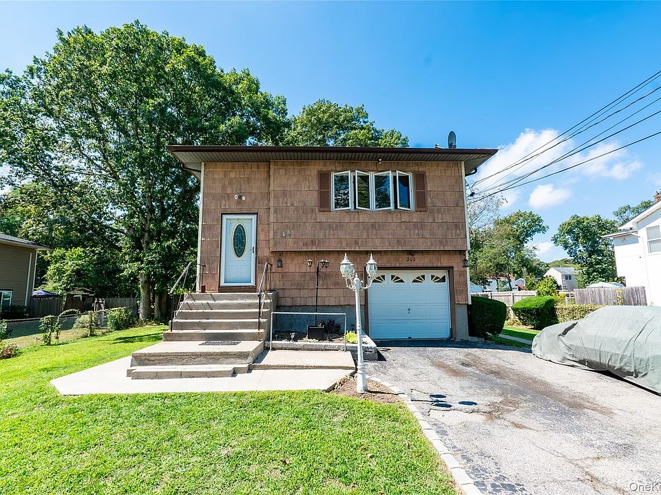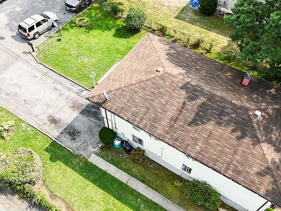 This home features 3 beds/1 bath, full kitchen, washer/dryer, spacious living-dining room open space in 2nd floor. 2 beds/ 2 baths, kitchenette and living space on the 1st floor with OSE. Offers hardwood floors throughout. Walls recently touched up with compound and fresh paint; Floors recently sanded down and polished. Great space for accessory apartment with proper permits. Big size lot on a dead end for privacy, located near shopping centers, local stores and restaurants, the LIRR and public transportation, quick access to HWY/PRWY. Sprinkler system.