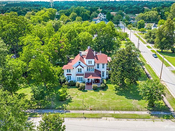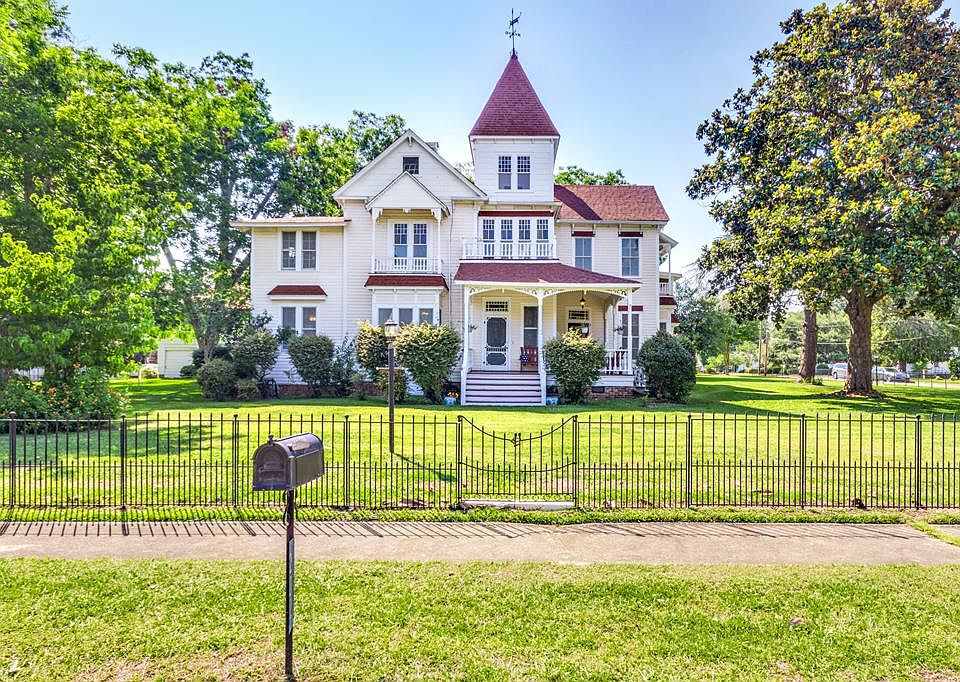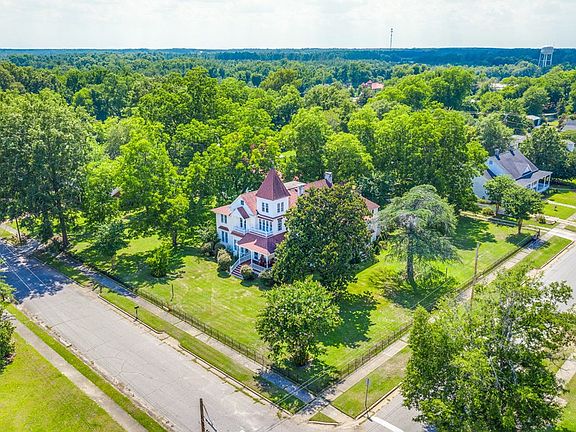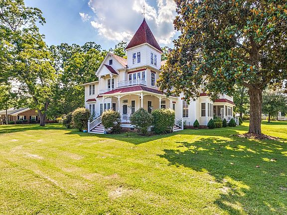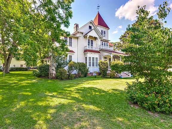 Accepting back up offers! Queen Anne Victorian home completely restored with original heart pine floors and colorful stained glass. The carriage house is a 2 bed 1 bath apartment and 5 car garage. Plumbing, electrical, foundation, HVAC, and every room in this home has been updated and or restored. 8 fire places have been converted to gas and all work. 3 balconies, a fitness center, 4 porches, up and downstairs masters with upstairs master's den, and office! 1 acre in town!