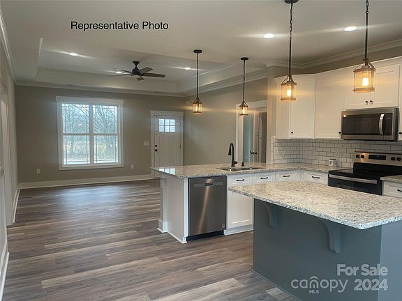 New Construction! All photos are representative of the finished home that is currently under construction. Siding colors may be different. Gorgeous 3 bedroom 2 bath newly constructed home. This home offers a split floor plan. The primary bedroom has a beautiful coffered ceiling, a large walk-in closet, a spacious primary bath with double sinks, granite countertops, and a beautifully tiled shower. The living area is open to the kitchen. The kitchen has beautiful wainscoting, granite countertops, and a spacious island with additional storage. Attic access is located in the spacious garage. Tax value is based on the larger parcel that has been divided into 5 lots. This home is located on lot #1- see attached survey.