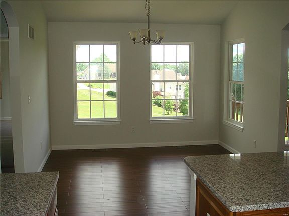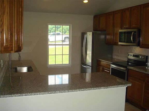 Very nice total electric 3 bedroom 2 bath home in Union, MO. Great neighborhood, corner lot, covered front porch, beautiful landscaping, divided floor plan, oversize two car garage, master suite with full bath whirlpool tub, separate shower & 11' walk in closet, main level laundry, deck, custom kitchen with granite countertops, 42" custom oak cabinetry with slide out shelves, whirlpool stainless steel appliances. Full walkout basement with safe room and roughed in bath. Don't wait this one is beautiful and move-in ready! Shows as new!