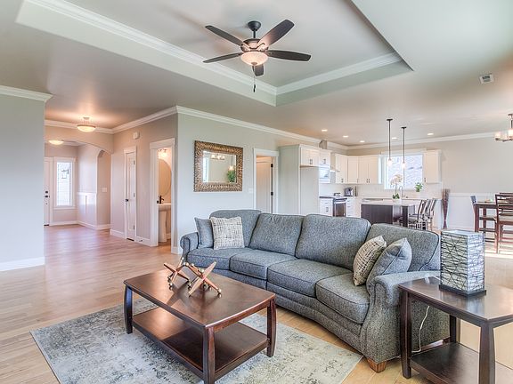 The 2625 plan is a large 4 bedroom rambler with a bonus room above the garage. An ideal home for large families or for entertaining guests. The entry leads directly to an impressive great room that's dressed with a coffered ceiling and large windows. The stately kitchen includes an island which is a great space for morning meals. The master suite also enjoys a coffered ceiling and abundant window space. The 5 piece master bath leads to an oversized walk-in closet. Three additional bedrooms are distanced from the master suite, sharing 2-1/2 baths. An option for an additional 2 bedrooms plus a den is also available. The large mud room features a storage closet and leads to the triple car garage. The plan number is the approximate square footage. Photos represent a similar home. The upgrades and features may vary, contact Columbia Ridge Homes for additional information.