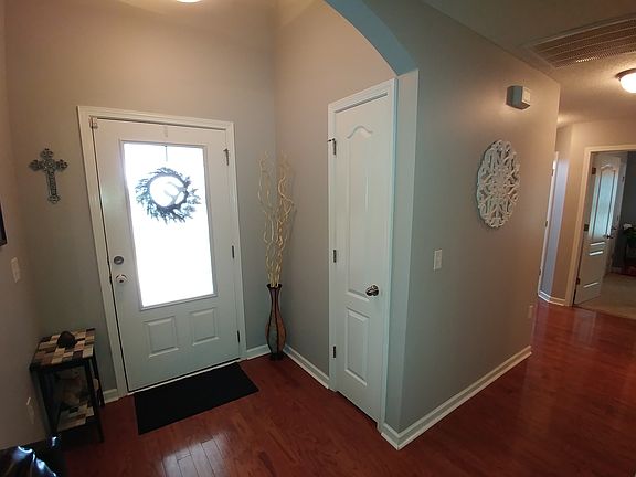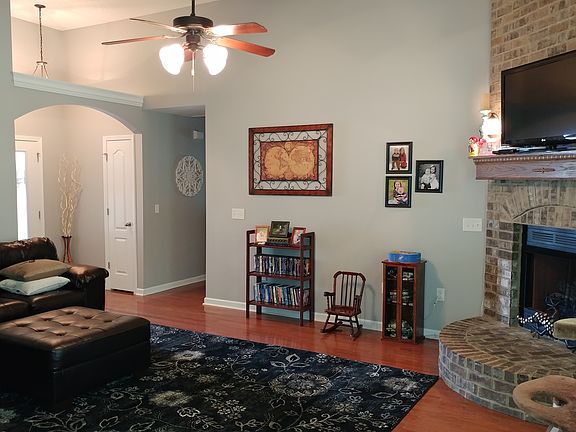 NO DOWN PAYMENT-QUALIFIES FOR 100% USDA LOAN! Beautiful 1 Owner, Full Brick Home featuring Less Than 1 Year Old HVAC, Popular Open Floor Plan w/ 12 Ft Ceiling in Great Room, Hardwood Floors, & Gorgeous Brick Gas Fireplace w/ Decorative Arch Hearth, Nice Kitchen w/ Tile Countertops, Breakfast Bar, Pantry & All Appliances Remain including Refrigerator, Trey Ceiling in Master BD w/ Dual Vanity, Garden Tub & Separate Shower, Covered Front & Back Porches, Gorgeous Back Yard Backed Up to Field w/ Shaded Tree Line