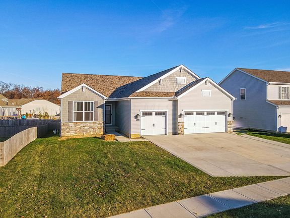 Hard to find 3 car garage ranch home located in the desirable Chestnut Commons neighborhood. This well maintained like new property has 9 foot ceilings throughout, black stainless steel appliances with a large open kitchen that flows into the living room. Large walk in closets in all 3 bedrooms with 3 full bathrooms. A professionally finished basement that adds an additional living space. The backyard is equipped with a professionally finished deck that walks down to a professionally finished patio that has a built-in natural gas fireplace and a fenced in backyard. Schedule your showings today!