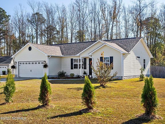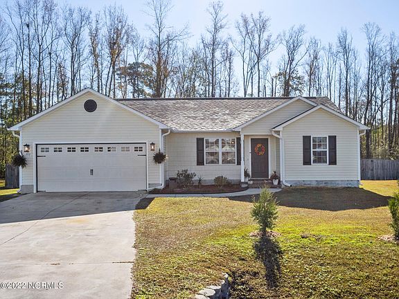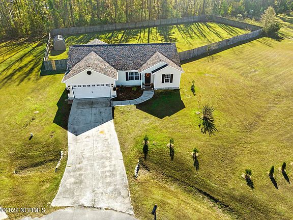Are you looking for something extra fresh and modern with lots of natural light and all the best vibes? If so, then this beauty is for you! With thoughtful contemporary updates to include sleek black finishes, beautiful bamboo flooring, bright white cabinetry, wainscoting, and paint — this home really stands out from the rest because of all its character and charm! Located in a quaint subdivision outside Jacksonville city limits, this super stylish abode sits on almost a full acre of land tucked back in a quiet cul-de-sac. Commute time is just 11 minutes to MCAS New River, 15 minutes to MCB Camp Lejeune, and for the coffee addict — just 9 minutes to Starbucks. Catch a flight at OAJ just 13 minutes away or have your toes in the sand at Topsail Beach in 30! To top it off, this stunner has no carpet anywhere, ceiling fans in all the bedrooms, and 2 closets in the primary suite! In one of the additional bedrooms, there's even a built-in workspace ready for your home office. The home also boasts a cozy back deck — perfect for entertaining, as well a huge fenced yard. Don't wait, make this RARE GEM yours today!