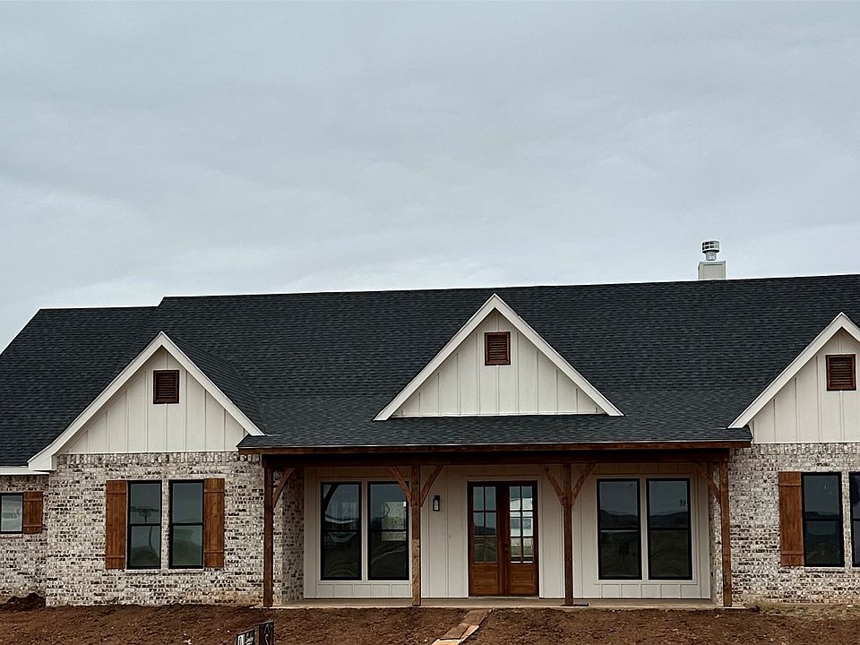 New construction that combines the best of contemporary and rustic style, providing a comfortable and stylish home perfect for family living in Tuscola, TX. Open floor plan with spacious living area and fireplace. High ceilings with exposed wooden beams. Luxury vinyl plank flooring. The island kitchen features stainless steel appliances, large walk in pantry and plenty of cabinet space. Laundry room. Secluded primary bedroom and bath with a beautiful vaulted ceiling, walk in shower, garden tub, oversized walk in closet and his and her vanities. Dining room with exposed wood beams. Lot size is just over half acre. You will love the large covered patio to enjoy the sunsets! Jim Ned Schools. Builder offering $10,000 concessions that can be used toward landscaping, fence or buyers closing costs. No city taxes!