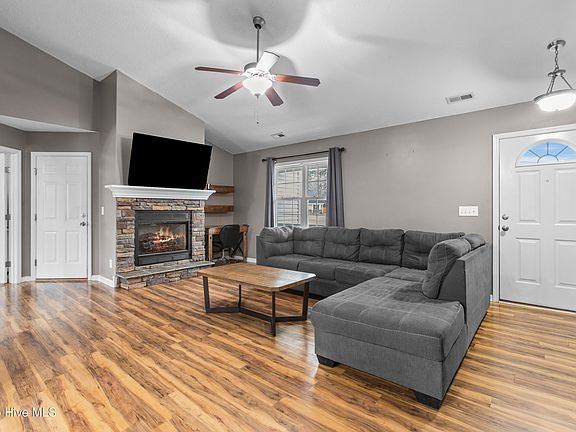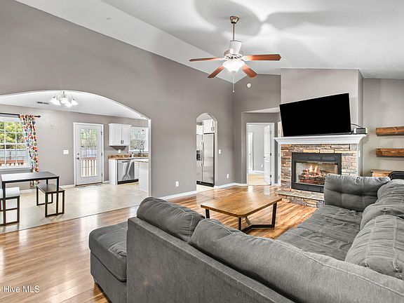 Welcome home to this delightful one-story gem nestled in the desirable Walnut Hills subdivision in Richlands, perfectly situated at the end of a quiet cul-de-sac! This stunning 3-bedroom, 2-bathroom residence boasts an inviting atmosphere, highlighted by soaring vaulted ceilings and arched doorways, and a fireplace in the living room, creating a sense of spaciousness and elegance, yet cozy. Ideal for relaxing evenings or entertaining.