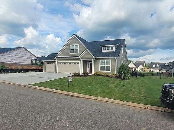 This "Chesterfield Plan" Craftsman style home has almost 2,100 square feet. Located in the desirable, developing Martin's Trail subdivision, this three bedroom, two and a half bath home has both a bonus and dining room! Laminate hardwood floors greet you in the foyer, formal dining room, kitchen and great room. Blinds throughout. The kitchen has 42" cabinets, granite counter tops, island and stainless steel appliances! Enjoy the open great room with gas fireplace. Half bath and laundry room have ceramic tiled floors. The master suite is on the main level. On-suite bathroom includes double sinks, large soaking tub, private water closet, ceramic tiled shower with glass surround door and ceramic tiled floor. In addition, to the two bedrooms and full bathroom upstairs is a large 14 X 14 bonus room which could be used as a third with a huge closet. This home has features such as tile in all the wet spaces, crown molding and 9' ceilings downstairs, transom windows above the front entryway door and double transom over the glass doors to the covered back porch. You can expect a fully sodded and irrigated front and back yard, mature landscape package, and raised brick slab. The hand-painted cement plank siding, charming board and batten design and dormers add extra character composition to the exterior of this home. Both of the garage floors have an epoxy coating already! The development will have sidewalks and street lights throughout! Street lights will be maintained by the city. Covered pavilion for entertaining and enjoyment is under development as well!