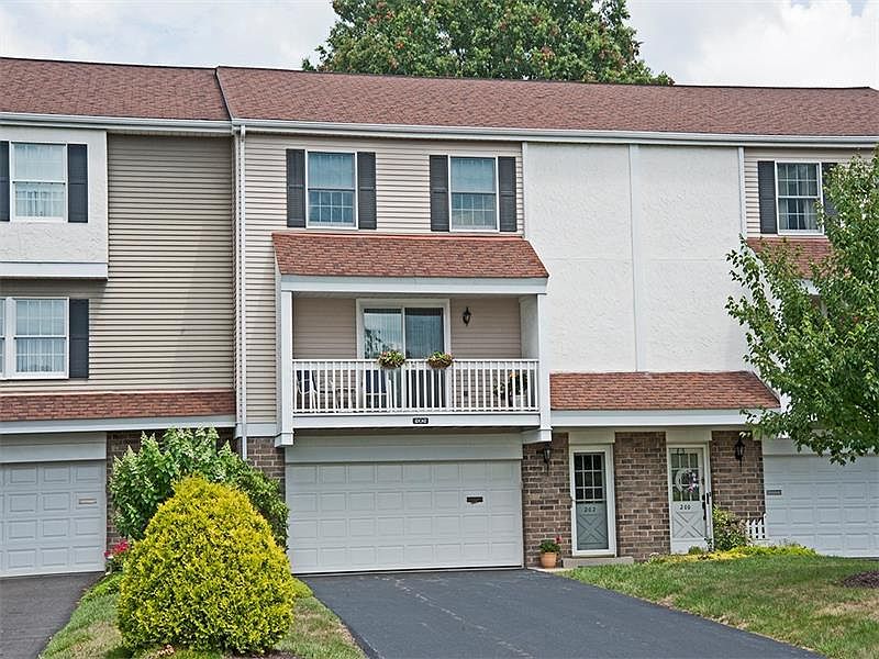 Custom quality built in Cranmoor Community. Feels like a single home but with the perks of low maintenance living. Exceptionally well maintained w/neutral décor. Level entry. Spacious living room opens to covered front deck. Dining room features chair rail and crown molding & is convenient to kitchen for serving. Family room w/hardwood floor and fireplace. Kitchen boasts generous counter space and a large picture window in eating area shows off patio and open space behind home. Three bedrooms on upper level include a large master w/bath. Updated hall bathroom, and lots of closet/storage space. Newer hot water heater and tinted Weathertight sliding glass door. All new "right height" commodes. Two car garage and level driveway with parking for 4 vehicles. Recreational amenities offered to all residents include a swimming pool, tennis courts, clubhouse. Near Rt. 19 and Donaldson's Crossroads. EZ access to I-79.