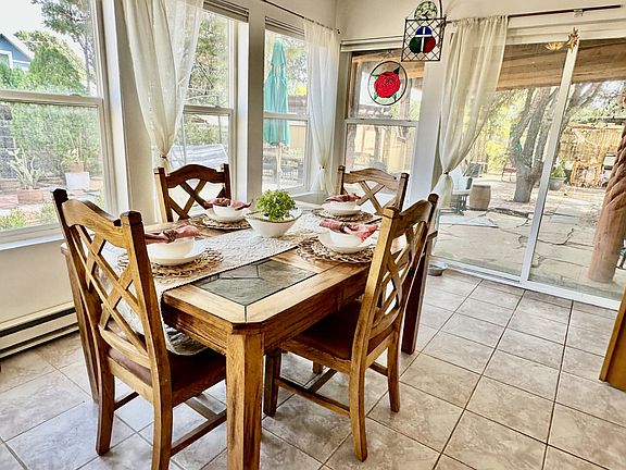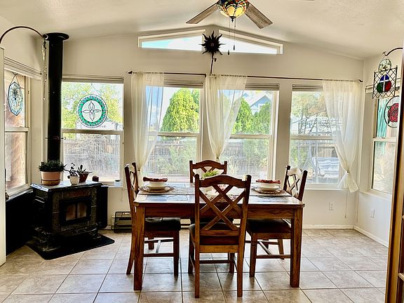 This charming Ranch-style home in the desirable White Rock community just outside of Los Alamos sits on a sizable quarter-acre+ Lot and has been lovingly updated with lots of upgrades throughout! With three bedrooms, two bathrooms, a living room, a family room, and a spacious and beautiful sunroom, it is the perfect combination of functionality and space. Recent updates include a brand-new refrigerated air conditioner, a new furnace, a new combination washer/dryer unit, a new hot water heater, and a new dishwasher. An exceptionally large backyard plus side yards provides ample space for all of your outdoor entertainment needs, including summer barbeques, family reunions, and relaxing evenings full of star gazing! The sizable outdoor spaces include covered portals, a gazebo with a fire pit, and three storage sheds with an unbelievable amount of storage! Additionally, the attractive, heavy-duty outbuilding located in the north side yard provides lots of flexibility, as it can potentially be converted into an additional studio, office, or workshop to provide even more living space! There is also plenty of room to store your RV, boat, or off-road vehicle. Conveniently located near schools, parks, and Los Alamos National Laboratory, this lovely home is just waiting for its new owner! With lots of wonderful local activities, including summer concerts, museums, and the Farmer’s Market, this property provides a great location with access to all. Schedule a viewing to preview this great property today!