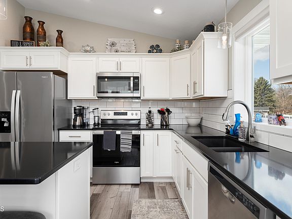 Discover the perfect blend of comfort and convenience in this newly listed five-bedroom, two-bathroom home in South Bismarck. Step inside to find a spacious entryway, you are sure to appreciate! Nestled in an established neighborhood, this residence boasts a beautiful white kitchen with quartz countertops, birch cabinets with soft-close drawers, pantry and stainless-steel appliances complemented by a granite sink and a stylish subway tile backsplash. The open floor plan between kitchen, dining room and living room, makes it easy for entertaining. Also on this floor is a primary suite with walk-in shower and walk-in closet, 2 bedrooms and full bathroom. Downstairs features an oversized family room, 2 additional bedrooms, laundry room and unfinished bathroom ready for your personal touch! The house features a triple stall garage with a gas heater and hot/ cold water, plus a floor drain. Outdoor enthusiasts will appreciate the ample parking space with a 2x29 parking pad, alongside a more sizable 22x30' concrete pad.