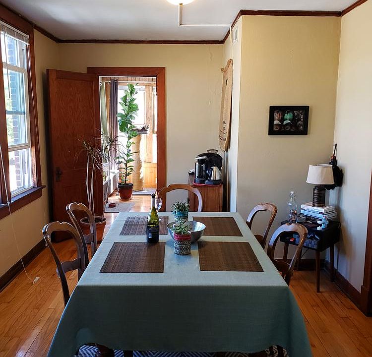 NOW LEASING FOR FALL 2025 (NEXT fall). We can't say enough about this sophisticated, AMAZING 2-bedroom unit located just a few blocks from the heart of campus! This spacious (nearly 700 square feet!) and light-filled 1930s-era unit on the second floor has 9' ceilings, painstakingly refinished oak hardwood floors, original oak trim and doors, architectural arched doorways. The recently remodeled kitchen has a dishwasher, and custom counters and cabinets. There's a gorgeous living room, a legit dining room, and two bedrooms (including a monster master bedroom that's nearly 200 sq ft. by itself!). 202 S. 1st is in the sweet spot--close to everything! You're 8 blocks from the quad (the CU-MTD's yellow, teal, and brown bus lines pick up on the corner and make the 7-minute trip to the Quad every ten minutes). The building is even closer to Downtown, Champaign: A short walk will take you to the very heart of Downtown, with its interesting shops, cafes, restaurants, movie theaters, and night life. And your east windows overlook the immediately adjacent Scott Park/Second Street Basin, with landscaped recreation areas, fountains, and popular walking trails. Oh, and did we mention there's a coffee shop downstairs? THERE'S A COFFEE SHOP DOWNSTAIRS!! Ok, but how much? So here's the deal: A spacious, light-filled vintage unit in a fantastic location comes with a price. In this case, that price is just $1349 per month. And that includes free laundry, garbage/recycling, sewer/sanitary. One off-street parking space available. Check out the images, take a deep breath, then contact us for more information or to schedule a private showing. Flexible start date around August 5th, 2025 to fit your schedule. We specialize in renting long distance to those who can't make it here in person. Gorgeous vintage unit with laundry included just steps from the U of I campus and close to downtown, Champaign.