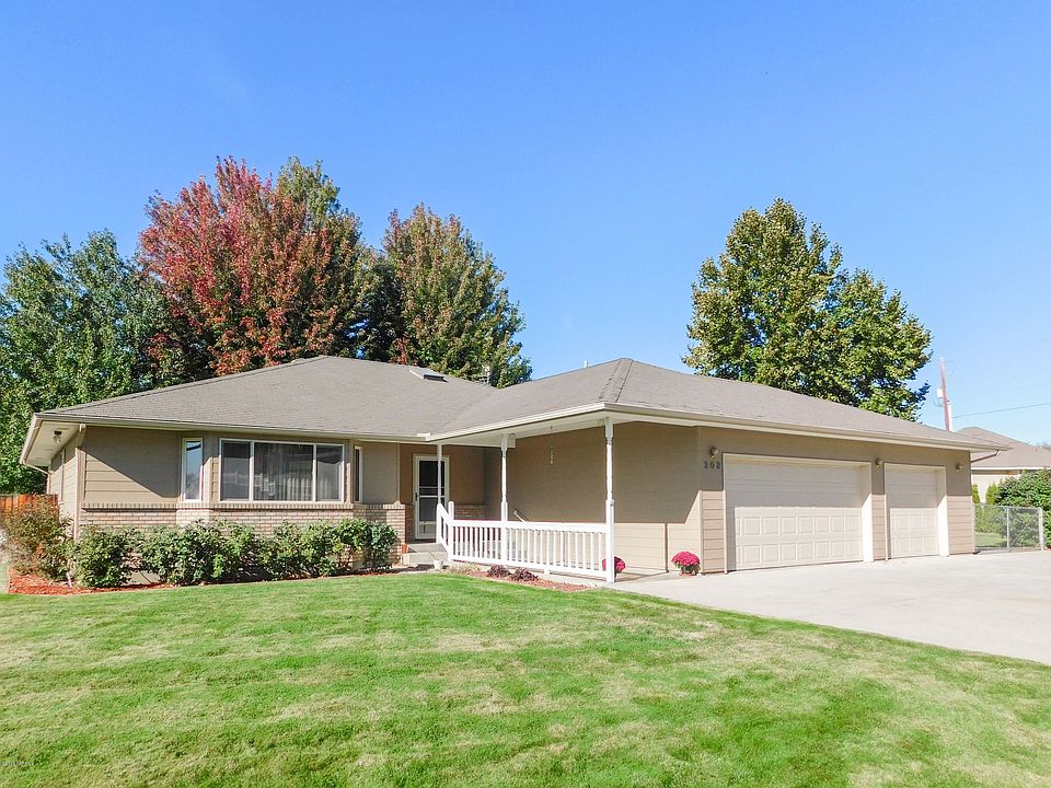 Wide entry opens into two living spaces. Open concept kitchen with quartz countertops, all stainless steel appliances and a gas range. Dining room boasts a built in hutch. Spacious master with double closets and on suite bath featuring double sinks, quartz countertops and a jetted tub. So much storage in this home and a beautiful fenced backyard and patio.
