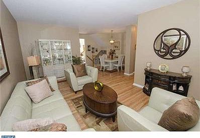 Terrific townhouse at Mews at Darlington. Fabulous kitchen with granite countertops (2013), newer back splash (2013), large granite island with room for 4 bar stools. recessed lighting, pantry closet and good cabinetry space. New LG Kitchen Appliances (2017). Sliding glass door to back deck with beautiful views. Great room with open layout to kitchen. Great room has propane fireplace and large picture window. High ceilings in great room and kitchen. First floor (formal living room and dining room, kitchen and great room) with hardwood flooring. Main floor powder room. Large master suite with extra office area which overlooks the lower level family room. Walk in closet. Master bathroom with double sinks, separate shower and Jacuzzi tub. All 3 bedrooms with ceiling fans. 2 nice sized bedrooms, hall laundry room (Samsung washer/dryer 2020) and hall bathroom complete the 2nd floor. High ceilinged finished walk out basement which is a great entertainment space and versatile, large room. Wet bar with large counter space and cabinets, small refrigerator. Built in desk/office space. Sliding glass doors to back patio and yard area. Propane connection. Unfinished basement side used as Storage and work space. Central air. 1 car garage with electric opener. Rose Tree Media school district. Close to major routes, shopping.