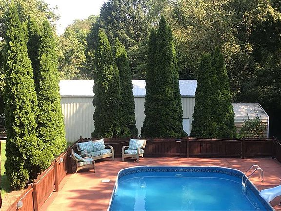 Well maintained brick ranch home sits on a full finished basement. A spacious family room with a rock, gas fireplace. The main level features oak flooring and cabinets, cathedral ceiling, an open concept kitchen with stainless steel appliances and a bar. Dining area has sliding doors to the deck. Large master bedroom with his and her vanities, garden tub,separate shower and 2 walk-in closets. The basement offers 2 bedrooms and 1 bathroom, a large room used for storage or exercise equipment along with a utility room. This home features a covered front porch, a covered deck and an open deck, 2 outbuildings and a fabulous 32 ft X 16 ft swimming pool with patio surround for entertaining.
