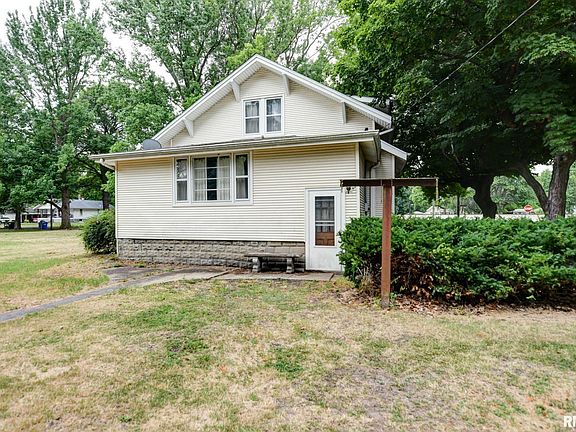 1584 sq. ft. two story home with 3 bedrooms , one full bath and one 1/2 bathroom, nice hardwood floors and trim work, big front porch, full basement, vinyl siding, block constructed detached two car garage 22 ft. x 26 ft, and storage shed 10 ft. by 14 ft., city utilities, spacious yard on 3 city lots. New electrical panel, and sump pump.