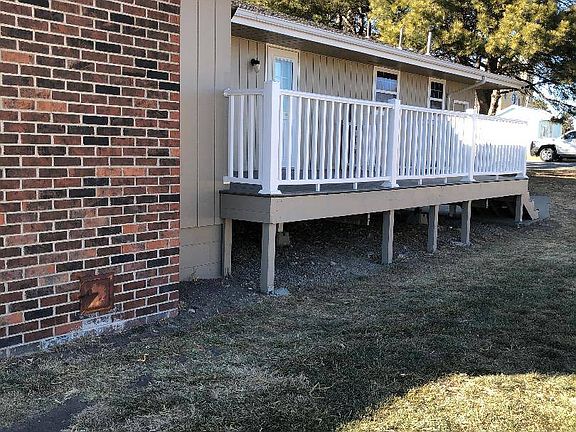 Beautiful and classic ranch style home with mature Scotch pine trees on the South edge of Damar, Kansas. This 3 bedroom 2 bathroom home has an open , flowing floor plan. As you enter the large living room with wood laminate flooring it flows into the spacious dining area with a beautiful wood burning fireplace with surrounding built-in cabinetry. Sliding patio doors lead to a beautiful trex deck with vinyl fence railing. The dining space is separated from the open kitchen by a breakfast bar. The kitchen has an abundance of oak cabinets and counter space with a trendy tiled backsplash. The stainless steel appliances will stay with the home. The appliances include a double door refrigerator, double oven range,built in microwave, and a dishwasher. Off the kitchen is the roomy laundry room with all kinds of storage. Off the laundry room is a 3/4 bathroom with a walk in shower. The back door leads to the deck. The 3 bedrooms are carpeted and large window and ceiling fans. There is a handy hall linen built-in off the bedrooms and main bath. The bathroom also has a trendy tiled shower/tub combo and large vanity and mirror. The half basement has an open family room that is carpeted and has 2 large closets. The other part of the basement has the utilities and offers much storage with shelving. Utilities include newer furnace, water heater, water softener, and a RO unit. The 2 car attached garage has heat, storage, 2 electric garage door openers. 30X40 insulated and heated shop with two 10 ft garage doors with electric openers is an added bonus to this property! The shop also has available water. Off the back of the shop is 10 ft lean-to that is perfect for storing lawn mowers, bikes, ect. Back and front yard underground sprinkle system. This is a must see move in ready super clean property in a beautiful, small town and is just waiting for a new family. f