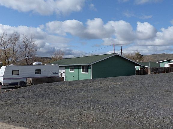 There are 2-3 bedrooms in home. Kitchen has lots of cupboards and storage space. Dining is open to the kitchen and living room and features vinyl windows throughout. Master bedroom is large with a wall of closets. The outside is freshly painted. The back yard is fenced with a covered patio. The shop is insulated, has concrete floors, work benches, and a compressor room. Can be used for a garage as it has a garage door. There is lots of overhanging storage in the garage plus 2 other storage sheds with covered storage. Green house and garden spot for any size garden and has several fruit trees (apple, pear, peach and plum). Excludes: compressor, woodstove in shop, and air conditioners. Sellers will need 2 weeks after closing to move.
