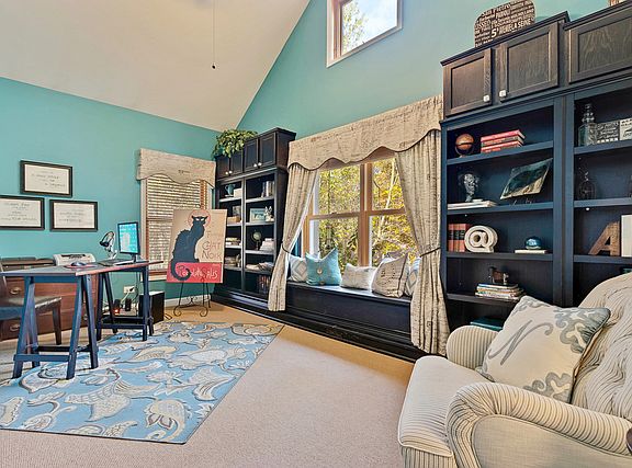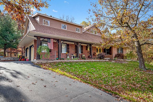 Nestled on a wooded lot in a private gated community this stunning 2 story boasts over 4000 sf of combined living space! Open Plan living room w/fireplace and beautiful wood ceilings, kitchen, informal and formal dining areas. Spacious screened in porch leads to a natural stone patio and serene backyard. Grand master suite w/fireplace and private bath. Finished basement complete w/wet-bar family room and office space. 1st floor laundry room and library. Hardwood floors. Access to all amenities including a well stocked 80 + acre man-made lake to enjoy sports, fishing, golfing, sledding hill, tennis and snow mobile riding.